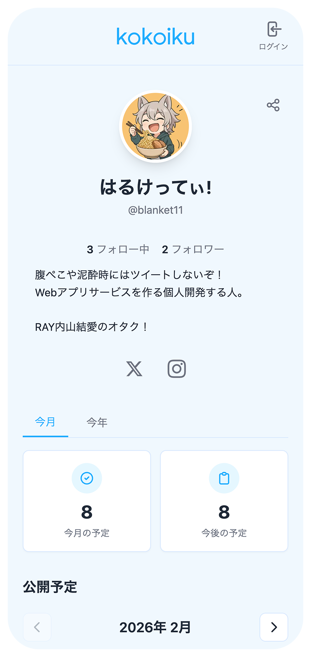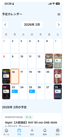 予定の登録管理確認などオタ活を便利にする機能が使えます。