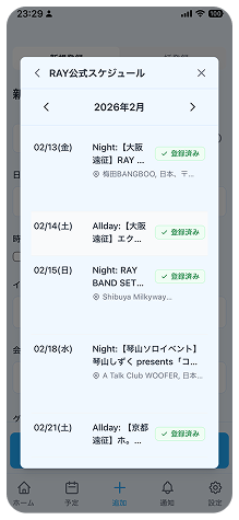 Googleカレンダーを連携することで、アイドルグループの公式Googleカレンダーの予定データから素早くインポートできます。
